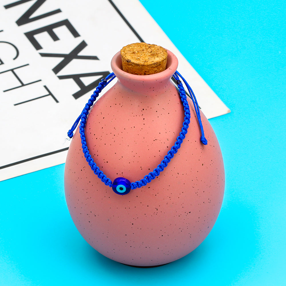 The centerpiece features a classic blue Evil Eye bead — a symbol traditionally believed across Persian, Turkish, Greek, and Mediterranean cultures to ward off negativity, jealousy, and unwanted energy. Its bright blue color contrasts beautifully with the braided rope, giving the bracelet a balanced and stylish appearance.
